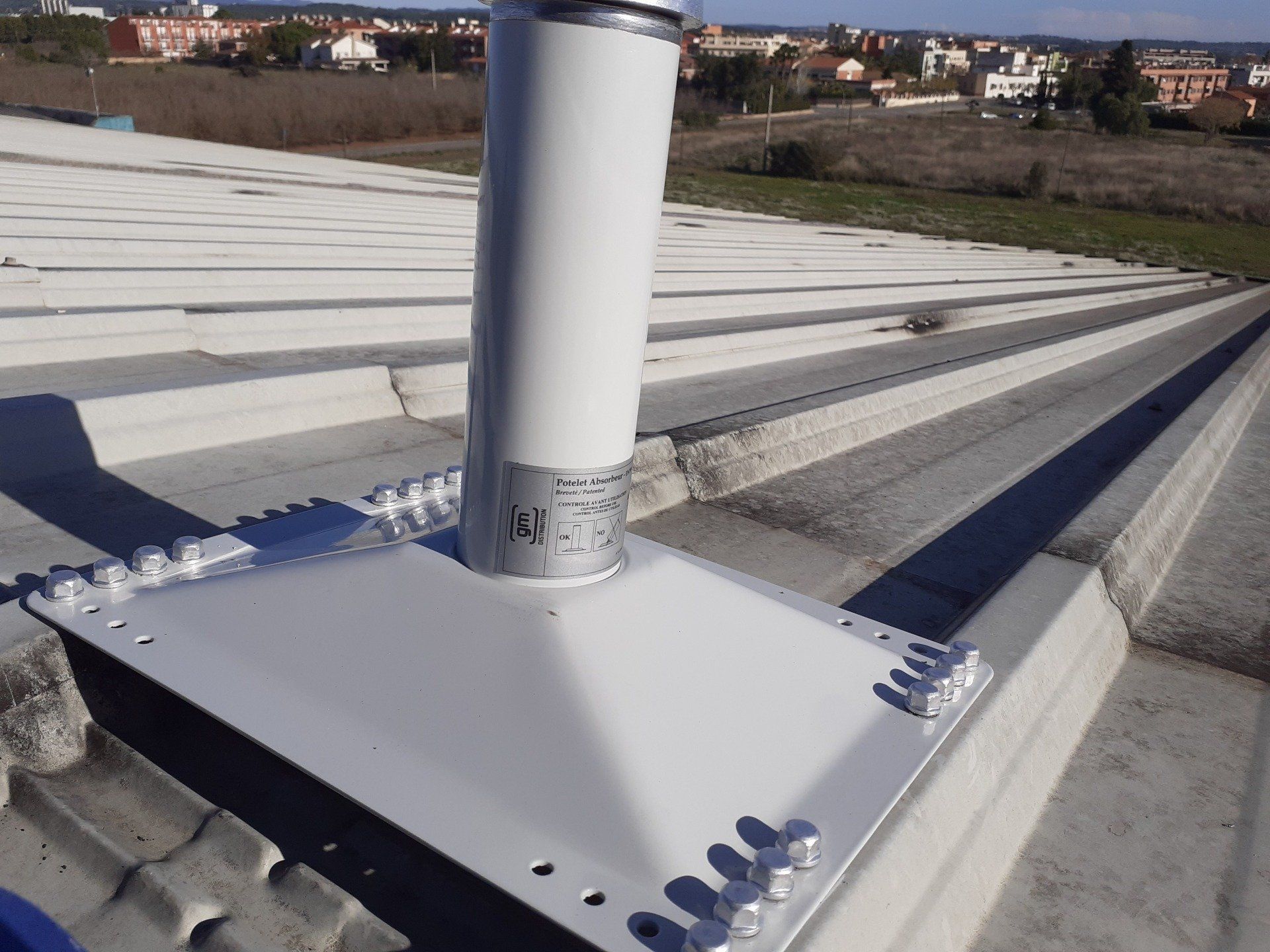 Los puntos de anclaje son dispositivos de anclaje, cáncamos generalmente, dispuestos específicamente para dar seguridad a trabajos en altura. Previstos, por tanto, para soportar el golpe que genera el frenado de la caída.